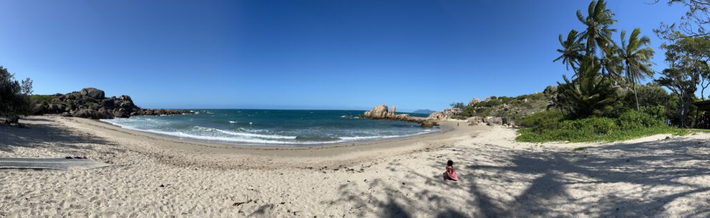 Nach der Wasserschlacht ging es dann noch zur Horseshoe Bay. Es heißt, dass diese Beach zu den schönsten Australiens gehört. Das hätte ich jetzt nicht unbedingt vermutet, wenngleich sie schön ist. Nach einem kurzen Spaziergang zu einem Lookout von dem wir einen 360° Blick genießen, geht es dann noch schnell in den Supermarkt. Heute Abend gab es Tiger Prawns.