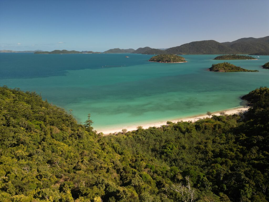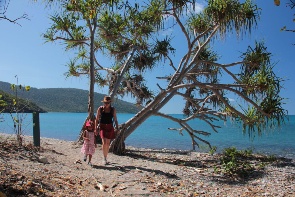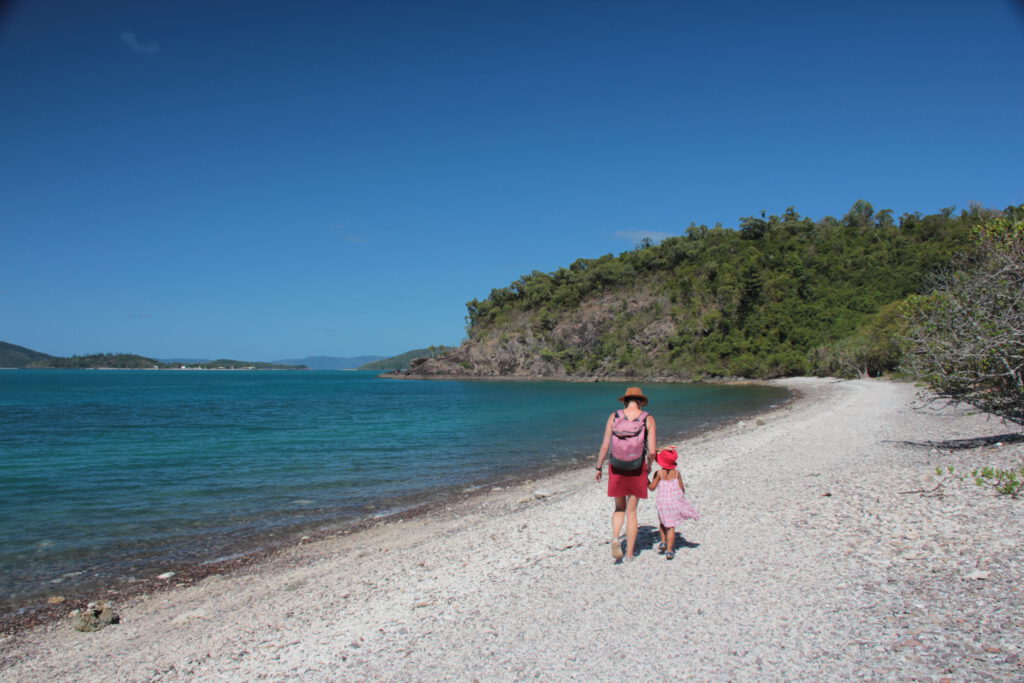 Nach 2km erreichten wir Coral Beach. Der Strand besteht aus angespülten Korallen und Nadcha fand so manchen Schatz. Wunderschöne Kaurischnecken und Korallenstücke landeten in Nadchas Schatzkiste und nur wenige Besucher verirrten sich an diese malerische Bucht Eine kurze Wanderung auf einen Lookout eröffnete uns ein gigantischen Blick auf einige der Whitsundays und das kristallblaue Meer. Einfach Traumhaft. Und Nadcha hat die ganze Wanderung heute wie eine Bergziege hinter sich gebracht. Sie kann es doch.