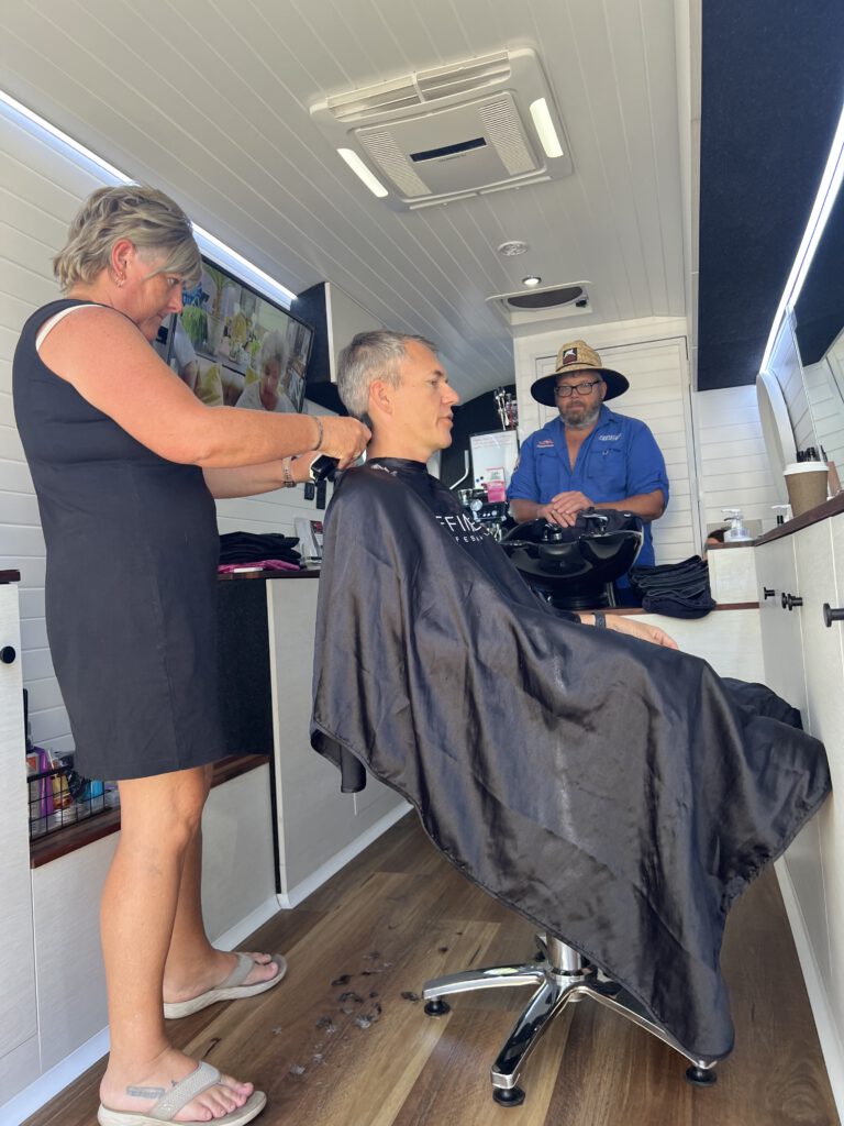 Heute morgen bekam Marc ein neues Frisürchen verpasst. Die „Friseurin auf Achse“ nahm 30 Dollar für ihren Haarschnitt im Camper und hatte den ganzen Tag einen vollen Terminkalender. Der Laden scheint gut zu laufen und der Friseur-Camper ist super ausgestattet und durchdacht. Er wurde extra angefertigt und einzelne Bauteile wurden von Übersee geliefert. Der Durchlauferhitzer kommt beispielsweise aus Deutschland 😉