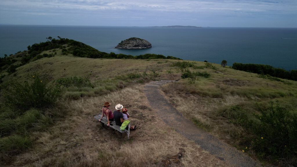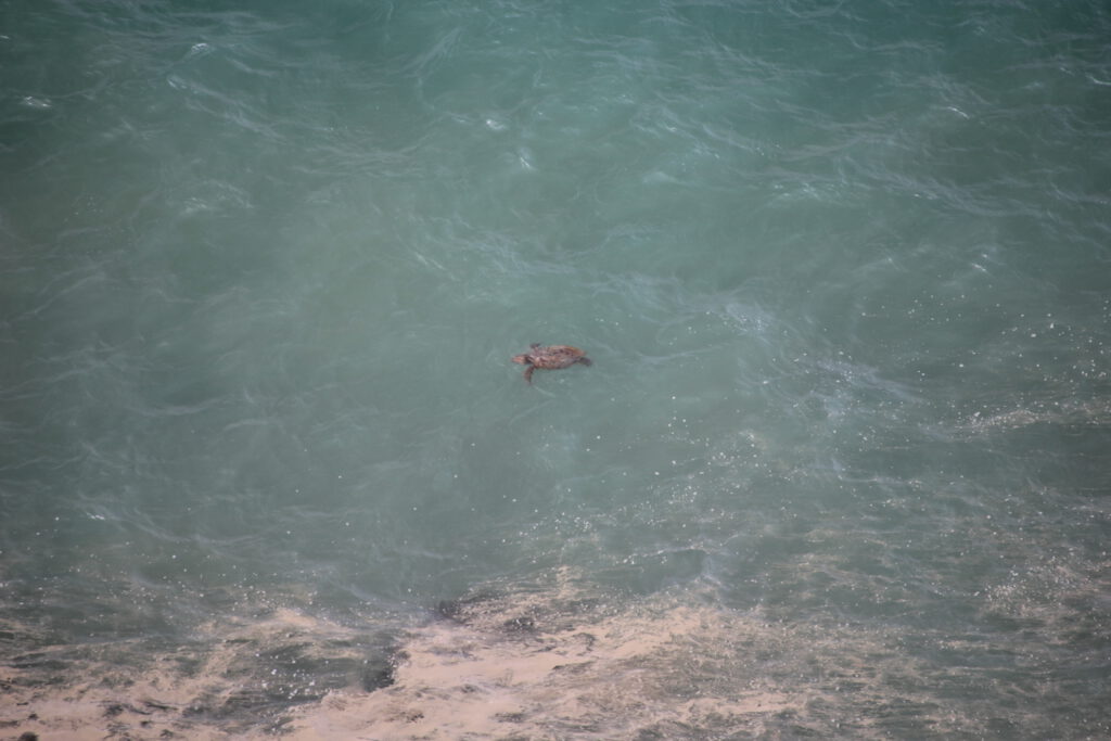 Ein Highlight war aber durchaus, dass man von zwei Aussichtspunkten des Weges nicht nur einen wunderschönen Blick auf die umgebenden Inseln hatte, sondern auch Meeresschildkröten beobachten konnte. Die Schildkröten schwimmen ganz dicht an die Küste heran, um dort Algen und Seegrass zu fressen und tauchen zum Atmen immer wieder kurz auf zur Wasseroberfläche. Nadcha und ich haben viele Schildkröten auftauchen sehen und immer wieder hörte man eine von uns rufen „Daaaa“. Marc war leider nicht so erfolgreich und immer wenn er gerade den Blick in die richtige Richtung bewegte, kam von uns ein „Schon wieder weg“. Sehr witzig und wir hatten viel Spaß. Schließlich war aber auch Marc erfolgreich und bekam sogar eine Schildkröte vor die Linse.