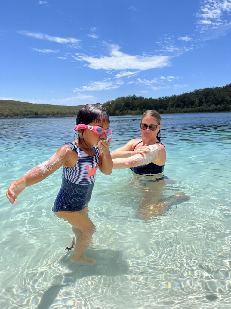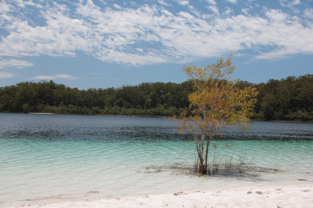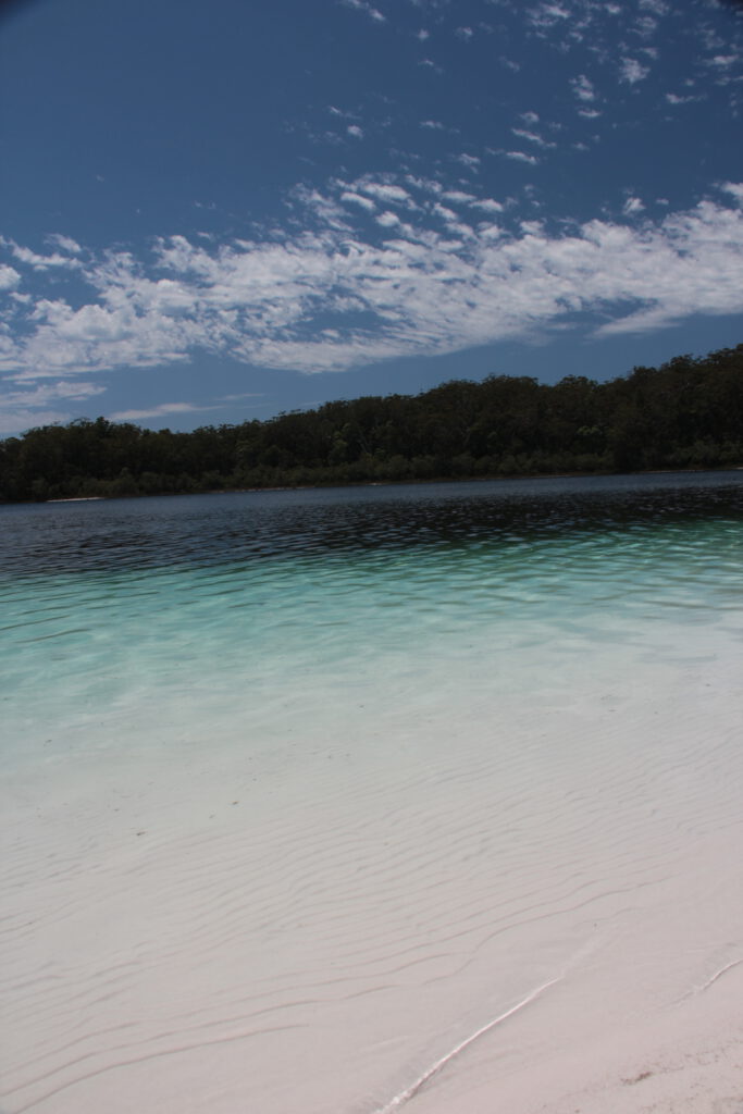Los ging es mit Lake McKenzie – ein flacher Grundwassersee mit einer Länge von 1.200m und bis zu 930m Breite. Das Wasser ist glasklar und herrlich erfrischend. Der weiße Sand enthält einen hohen Anteil an Silizium, mit dem man sich einreiben sollte, um eine wundervolle jungendliche Haut zu erhalten. Es funktioniert! Ich fühlte mich wie Kleopatra, die gerade aus einem Milchbad empor gestiegen war.