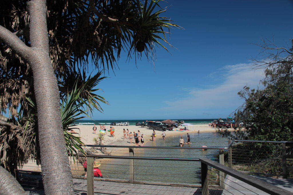 Die letzte Station war Eli Creek. Ein weiterer Süßwasser Creek bei dem ca. 4,5 Mio. Liter Wasser pro Stunde ihren Weg ins Meer finden. Da es nach Lake McKenzie das zweitbeliebteste Ziel der 500.000 Touristen jährlich auf Fraser Island darstellt, war dieser Platz entsprechend überlaufen. Erneut ein abstoßendes Beispiel von Massentourismus in einem Naturparadies, was wir uns auch gerne hätten sparen können.