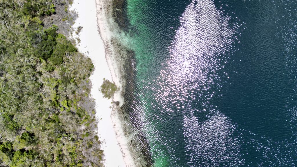 Sand. Viel Sand. Weißer Sand, gelber Sand, orangener Sand, brauner Sand. Das beschreibt Great Sandi Island, oder K’Gari, oder vielmehr Fraser Island, unter dessen Namen die Insel offiziell geführt wird. Sie ist mit 124km Länge und durchschnittlich 15km Breite die größte Sandinsel der Welt. Geologen haben bei Probebohrungen herausgefunden, dass der Sand bis in eine Tiefe von ca. 600m reicht. Somit fasst K’Gari mehr Sand als die Wüste Sahara – die Flächenmäßig zwar deutlich größer ist, der Sand dort aber nicht so tief reicht.