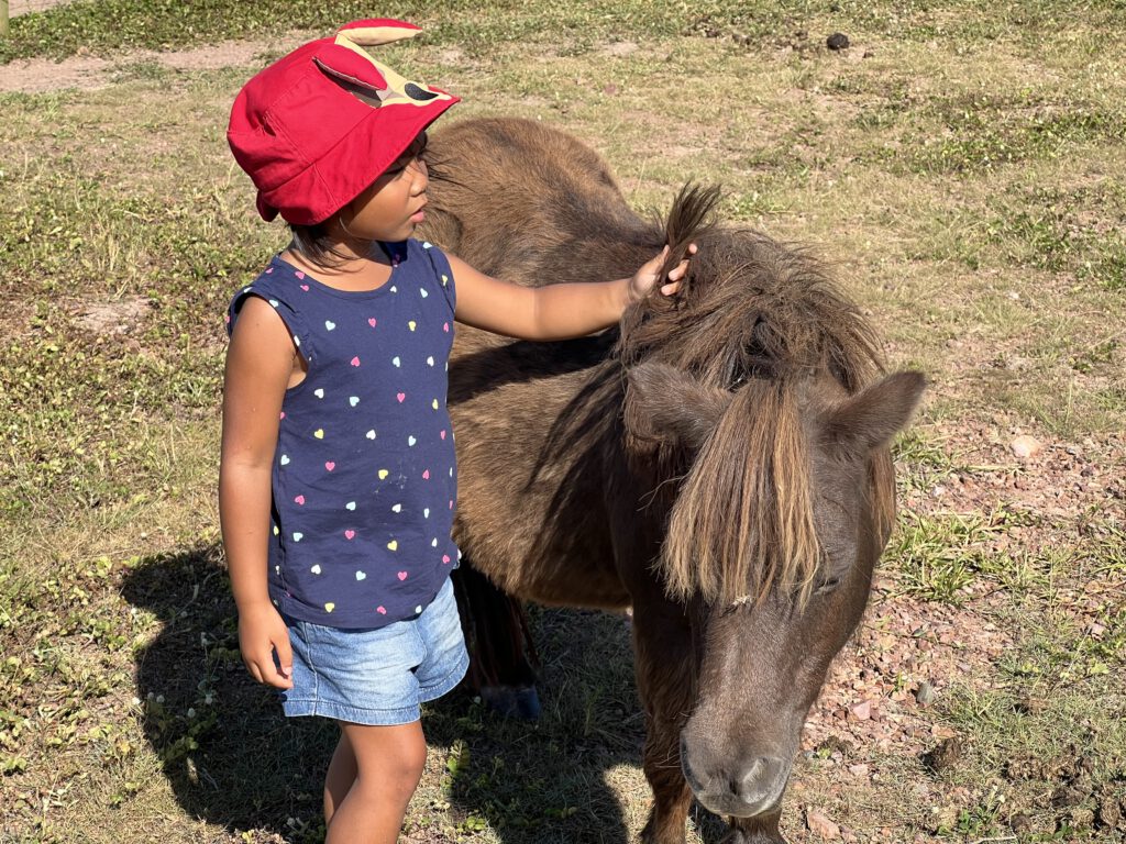 Nadcha war total happy als sie uns um kurz nach 6h aufweckte. Zu allen Seiten Ponies. Sie wollte noch nicht einmal frühstücken sondern sofort raus zu ihren Freunden. Wir konnten uns letzten Endes darauf einigen, dass sie mit Blick auf die Pferde frühstückt. Welch Idylle, als dann noch in der Ferne 4 Kängurus zum Grasen auf das Grundstück hüpften.