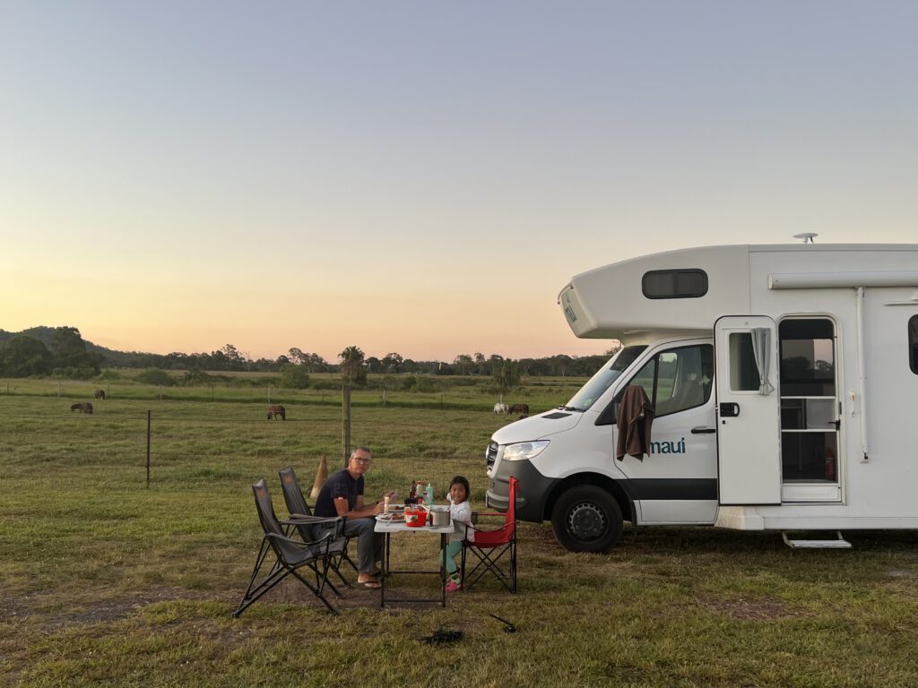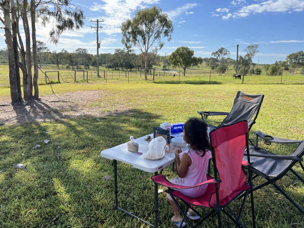 Nach dem Frühstück machten wir uns in Richtung Yeppoon auf den Weg. Dort gibt es den einzigen öffentlichen Dump Point in der Umgebung. Die Strasse führte uns an einem netten Strand vorbei, an dem wir zugleich den Vormittag verbrachten. Zu Mittag gab es dann die von Nadcha gestern eigens eingesammelten Eier. Gegen 14h hatte Nadcha aber nur noch das gestern angekündigte Reiten vor Augen, weshalb wir uns auf den Rückweg machten.