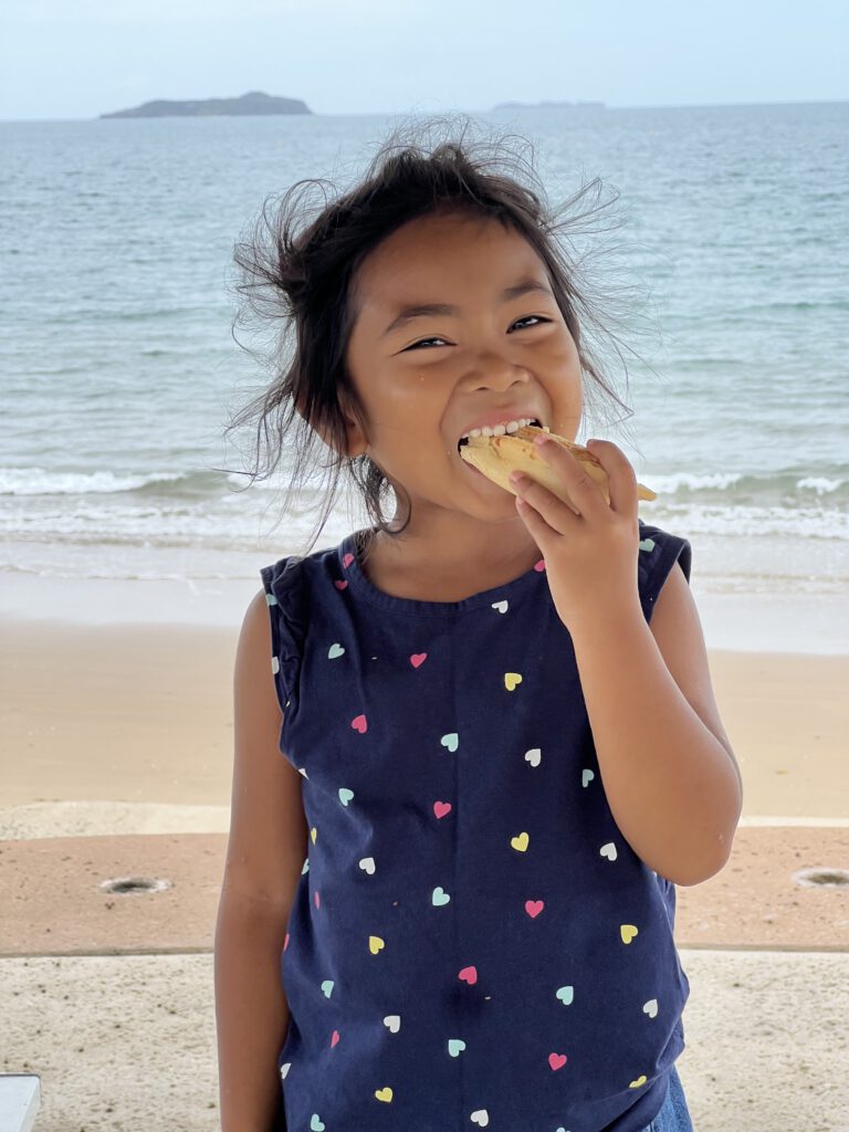 Weit sind wir heute nicht gekommen. Von unserem Camping Platz sind wir nach Emu Beach gefahren, um einzukaufen. Ein kleiner Ort an der Küste mit einer Hand voll Häusern sowie einem üppigen Supermarkt und einer Post. Hier gab es einen netten Picknick-Platz am Meer, an dem wir zu Mittag einen Pie aßen. Danach gingen Nadcha und Nanette noch eine Runde ins Meer, während ich ein kleines Nickerchen in unserem mobilen Zuhause machte. Es hat durchaus Charme sein Zuhause immer dabei zu haben und dieses für ein Schläfchen nutzen zu können – wo auch immer man gerade ist. All zu bald ging es aber schon wieder weiter.