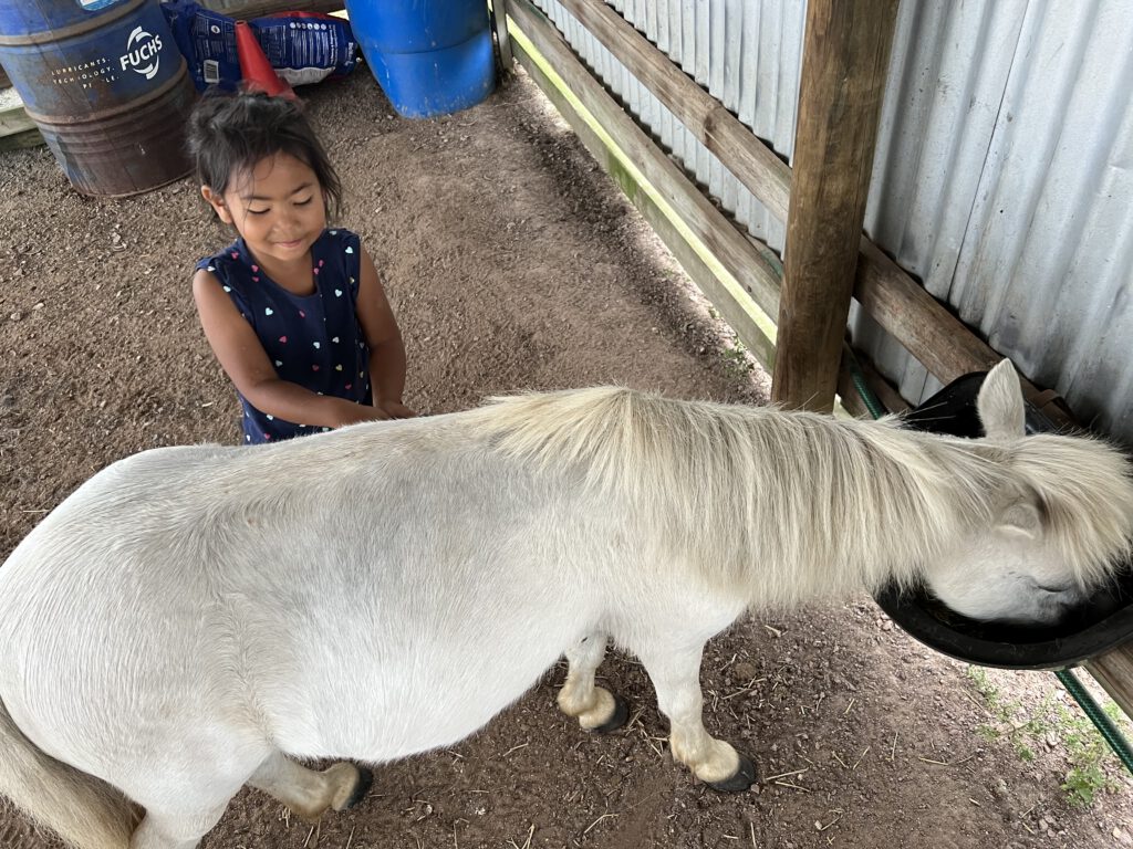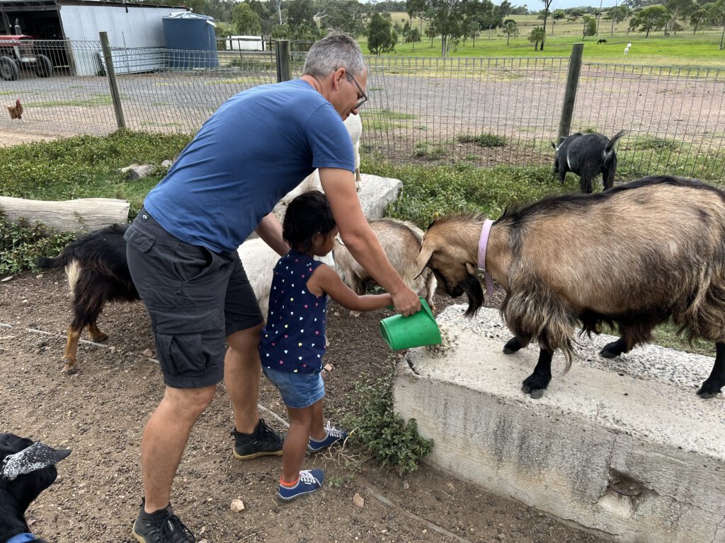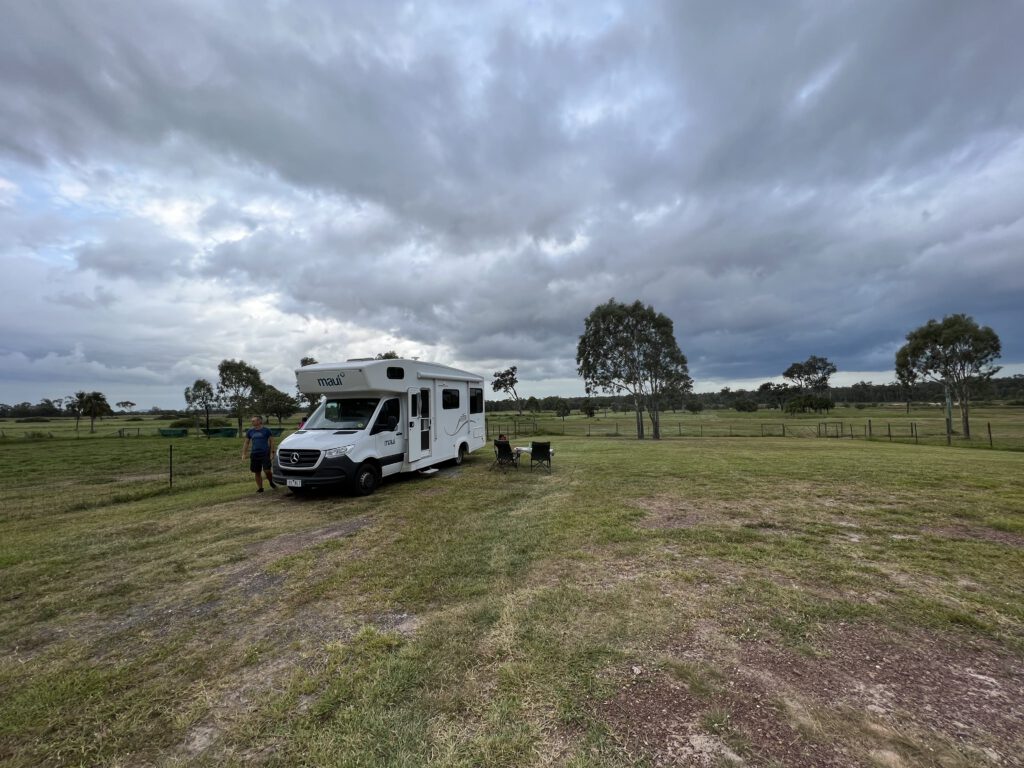 Wir hatten über WikiCamps einen Stellplatz auf einer Farm gefunden. Dafür, dass er „fully self contained“ sein sollte – also keine Toilette, keine Dusche, keine Camp Kitchen – war er ziemlich teuer. Dafür darf man aber mitarbeiten. Moment… die Arbeitskräfte bringen ihre eigene Unterkunft mit, zahlen für den Stellplatz und arbeiten dann auch noch unentgeltlich? Mir scheint, hier wurde der heilige Gral der Marktwirtschaft gefunden. Allerdings, seit Nadcha von dieser Farm gehört hatte, war sie nicht mehr zu bremsen, denn es gibt dort Pferde – besser gesagt Ponies.