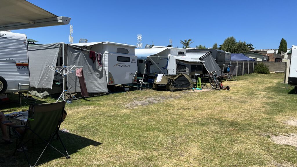 Als wir in Lakes Entrance einfuhren war sofort klar: Hier ist es vorbei mit der Ruhe. Der Ort liegt an einem künstliche Kanal und gleichzeitig am 90 Mile Beach und ist vollgepackt mit Shops, Kneipen und kitschigen Attraktionen wie Geisterbahnen, bunten Minigolfanlagen und riesigen Rutschenparks. Der Kanal ist dreckig und überall stehen “poisones algi“ Schilder. Kein Wunder, denn überall scheint Abwasser eingeleitet zu werden und der Kanal wird von 100erten Schiffen befahren. Unverständlich also, wie manche Leute sogar mit ihren Kindern in dieser Brühe Schwimmen gehen. Aber zum Glück gibt es ja auch noch einen Strand hier.