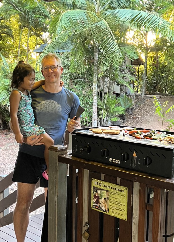 Den tollen Tag haben wir eben mit Krokodilfleisch vom Grill ausklingen lassen.
