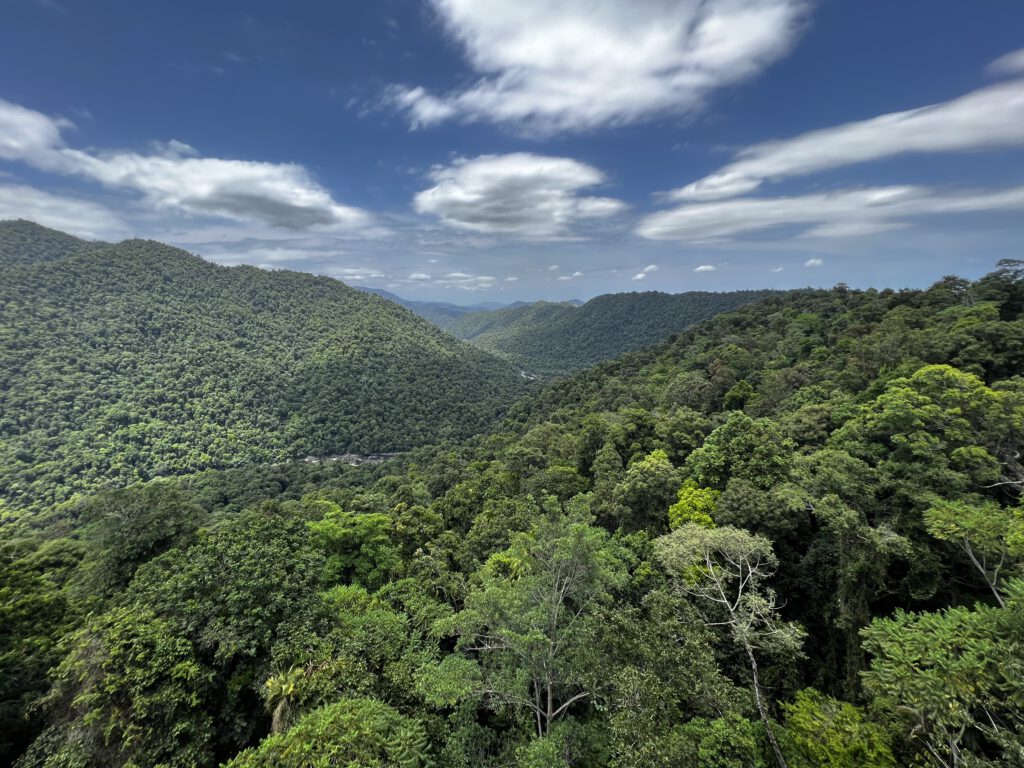 Das Regenwaldgebiet gehört den Mamu Aborigine. Sie sind oder waren die populationsstärkste Gruppe der Aborigine und lebten seit 40.000 Jahren in diesem Regenwaldgebiet. Nachdem hier ein Zyklon gewütet hatte, konnte man minimalinvasiv einen Skywalk errichten. Dieser besteht aus verschiedenen Plattformen, die einen zwischen den Baumkronen wandeln lassen. Erneut Regenwald und erneut ein traumhaftes Erlebnis – begleitet vom Gesang des Regenwaldes. Leider hatten wir auch hier nur begrenzt Glück bei der Tiersichtung. Der Ausblick auf den Regenwald war aber mehr als eine Entschädigung.