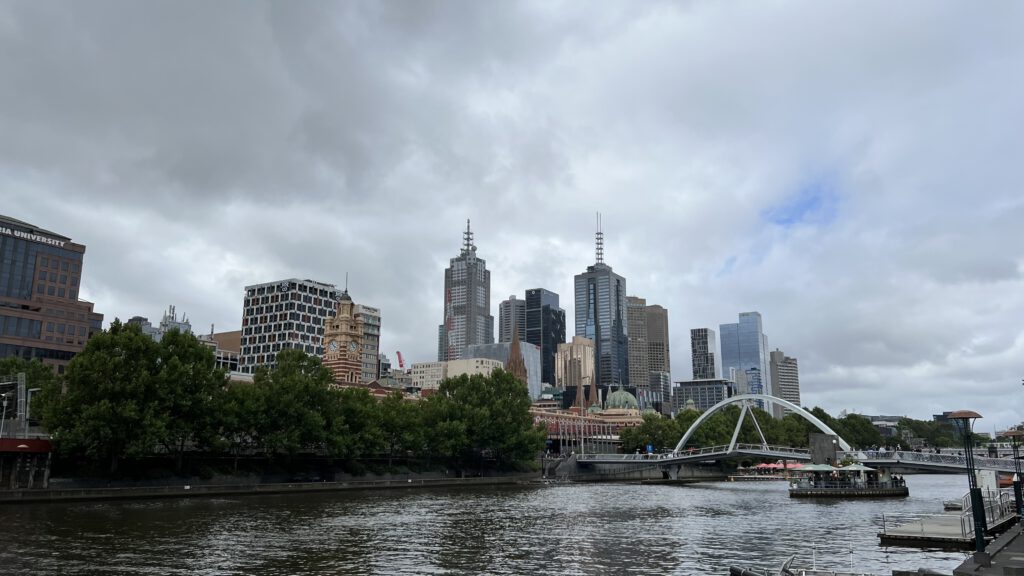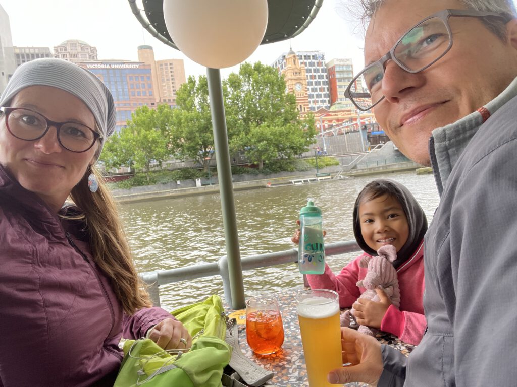 Hungrig wie eine Meute Piraten vielen wir zuerst einmal in das nächst beste Restaurant ein. Es war ein Vietnamese, der uns eine hervorragende Pho, gebratenen Reis und Springrolls servierte. Gestärkt und mit guter Laune war es nun an der Zeit die Innenstadt zu erkunden. Im gesamte Stadtkern von Melbourne sind die Strassenbahnen kostenfrei und so wollten wir die Circle Tram als Hop-on Hop-off Version nutzen. Aber es kam leider anders… Die Tram brauchte bereits erstaunlich lange bis zu unserer Haltestelle. Als wir dann in eine bereits gnadenlos überfüllte Bahn einstiegen, wendete sich nur wenige Minuten später die Bahnführerin an uns und bat uns alle wieder auszusteigen. Es gab ein Problem mit der Technik, dass nicht behoben werden konnte. Das sind ja Zustände wie bei der Deutschen Bahn! Wir nahmen es dennoch mit Humor und machten uns kurzerhand zu Fuß auf den Weg zur nächsten Haltestelle. Nur wenig später fanden wir uns am Yarra River wieder und ließen uns, wie bereits in Sydney, vom Puls der Stadt treiben.