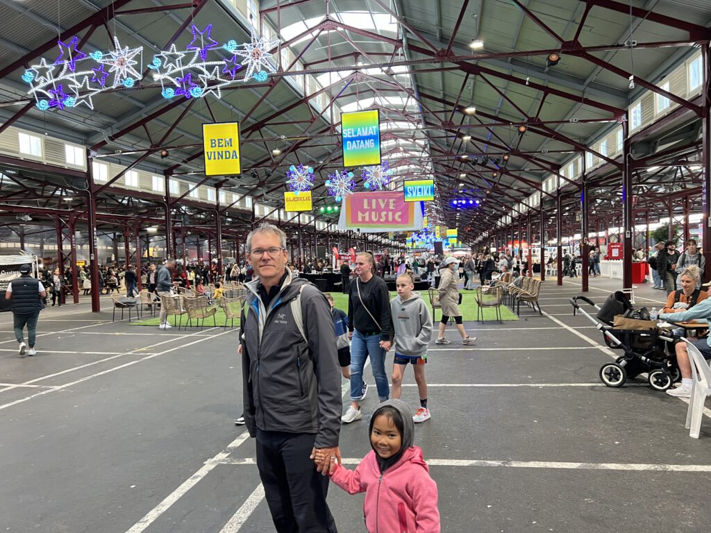 Um den Pfeiler unter einer Brücke über den Yarra River fanden wir eine nette kleine Bar, in der wir etwas tranken während wir den Booten zuschauten, wie sie die Touristen auf und ab beförderten. Danach ging es auf zu einem neuen Versuch mit der Circle Tram zu fahren, der dieses Mal auch glückte. Wir ließen uns von der kleinen rustikalen Tram am Parlament und dem alten Stadtgefängnis vorbeifahren und stiegen am Queen Victoria Market aus, einer riiieesigen Markthalle. Hier fand heute Abend ein Nachtmarkt statt und es war bereits allerhand los. Die Foodtrucks waren eindeutig in der Überzahl und so war es um so schwerer sich für etwas zu entscheiden.