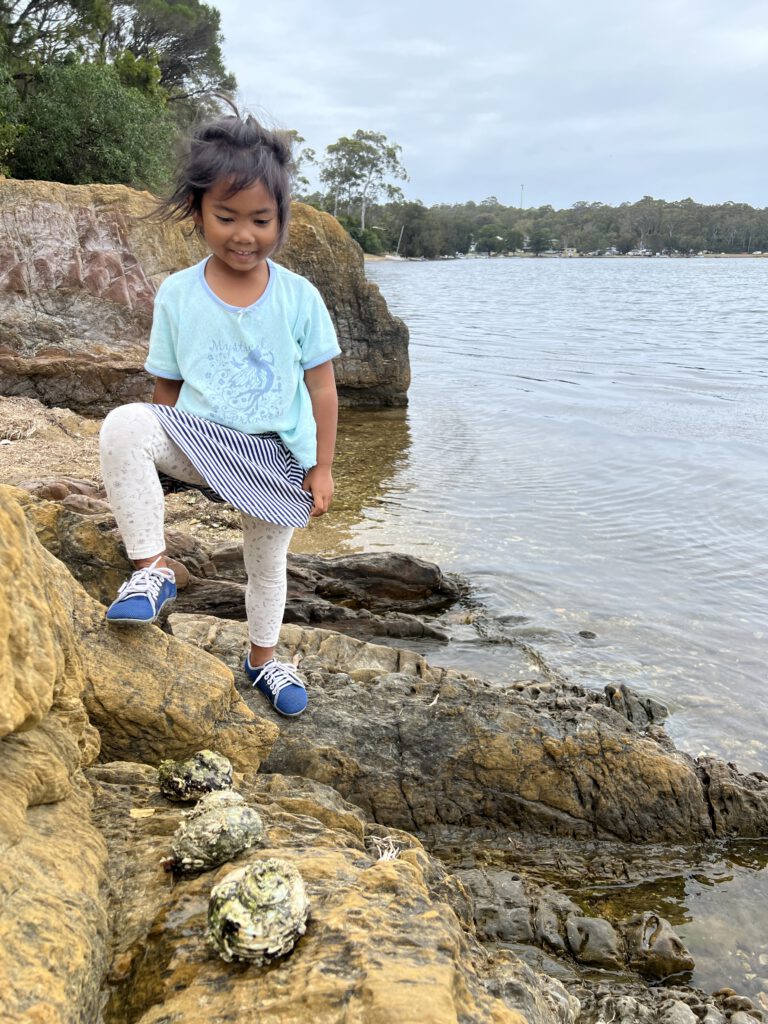 Wir verliessen den Horror Campingplatz zügig und machten auf halber Strecke zum Ziel eine Pause. In Moruya gab es einen großen Spielplatz zum Austoben und einen Zufluss zum Meer, an dem sich häufig Seerobben tummeln. Diese waren heute jedoch auf Tour und lagen nicht auf dem Steinen, wie erhofft.