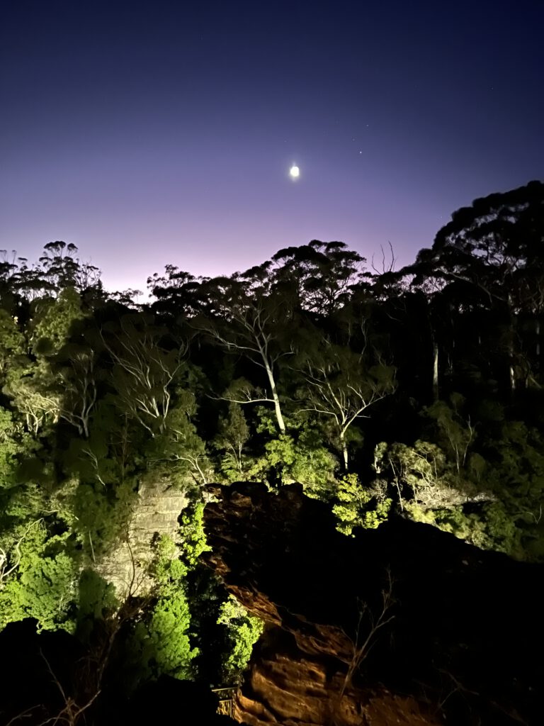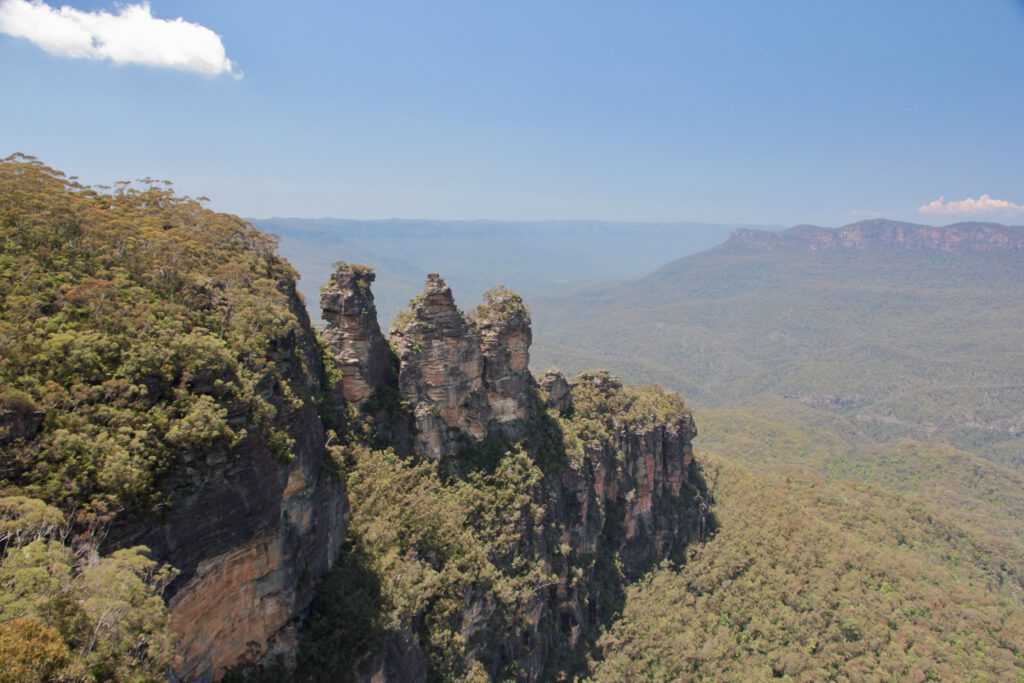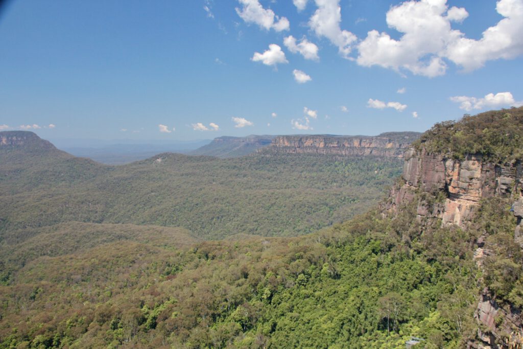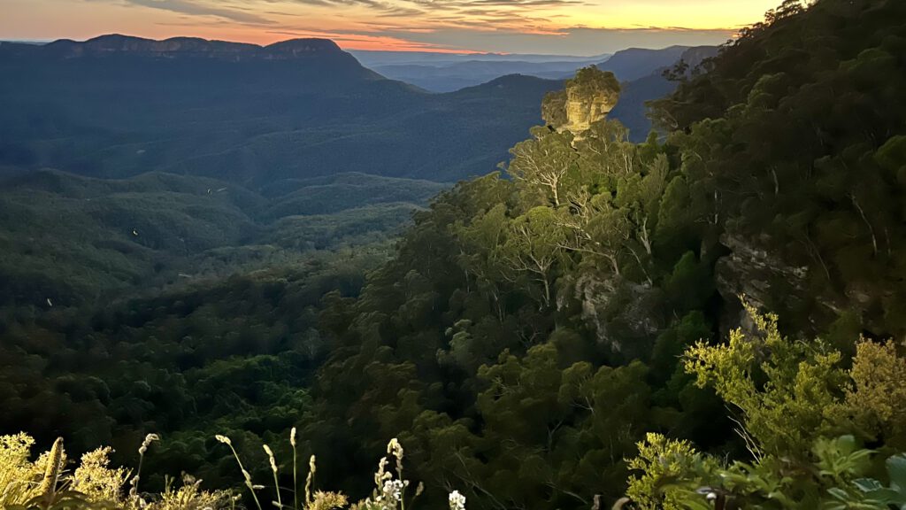 Für die Weihnachtstage hatten wir uns die Blue Mountains ausgesucht und dort einen Campingplatz für drei Tage gebucht. Die Blue Mountains sind ein Gebirge 60 km westlich von Sydney und große Teile der Blue Mountains wurden im Dezember 2000 vor allem wegen des Artenreichtums an Eukalyptusbäumen zum UNESCO Weltkulturerbe erklärt. Das ätherische Eukalyptusöl verdunstet und feiner Nebel liegt über den Bergen und sorgt für die Blaufärbung bei Tag – daher der Name.