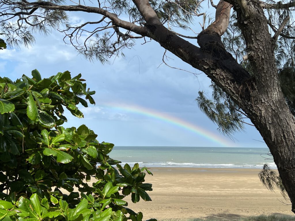 Zurück auf der Strasse dauerte es dann keine 5 Minuten, da war Nadcha auch schon eingeschlafen und schlief fast den gesamten Rest der verbleibenden Strecke. Kurz vor Rockhampton ging es links ab Richtung Küste nach Yeppoon. Ein größeres Städtchen mal wieder. Wir hatten uns noch in Marlborough an einem öffentlichen Telefon einen Campingstellplatz mit Meerblick gesichert. Seit einiger Zeit sind die öffentlichen Telefone für alle nationalen Gespräche in Australien – na… – kostenlos und unsere Reservierungen somit sehr einfach, wenn es mal nicht online zu reservieren geht.