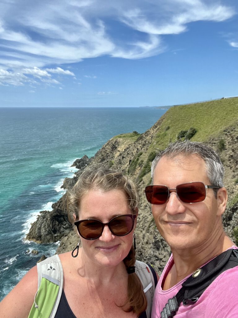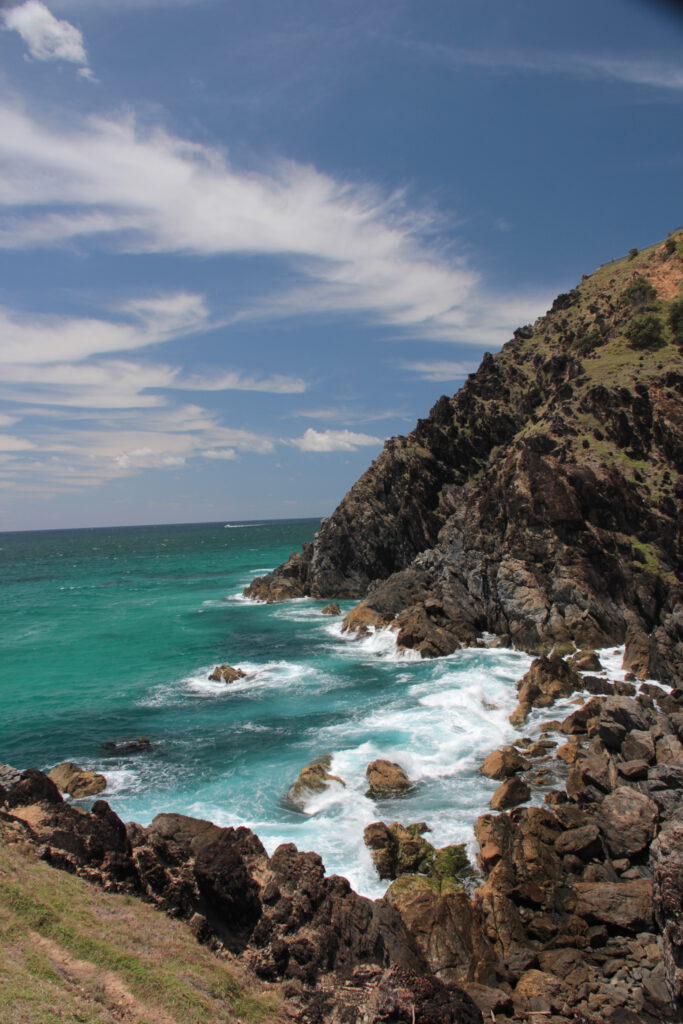 Auf einem wunderschönen Spaziergang entlang der Klippen schauten wir uns die Bucht von Byron Bay an und konnten eine Gruppe von Delfinen beobachten. Manchmal kann man von diesen Klippen auch Haie entdecken, die direkt neben den vielen Surfern hier unterwegs sind.