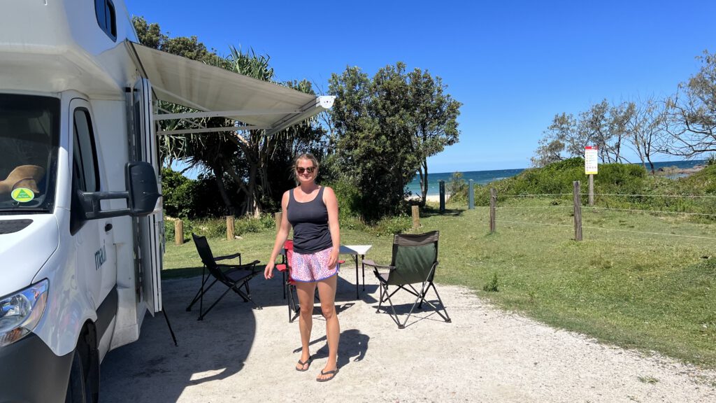 Gegen 15:00 Uhr parkten wir endlich auf unserem Stellplatz direkt am Meer ein. Wir alle sind uns einig, das ist der schönste Campingplatz, auf dem wir auf unserer bisherigen Reise gestanden haben. Direkt an einem wunderschönen Strand, mit eigener Feuerstelle, Kängurus und nur wenigen Mitcampern.