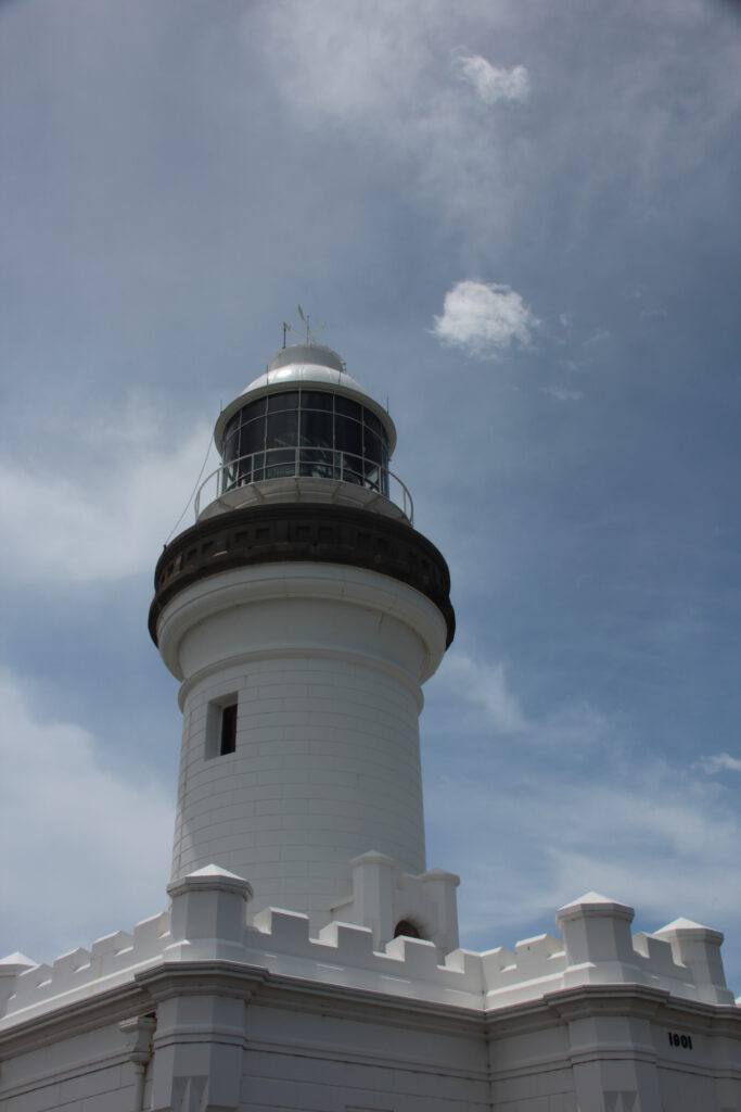 Heute Morgen wachten wir mit den Geräuschen des Regenwaldes auf. Einfach herrlich. Nach dem Frühstück verließen wir Mount Warning und fuhren zurück an die Küste. Mit viel Glück konnten wir unser riesiges Schiff auf einem Parkplatz nahe des Leuchtturms bei Byron Bay parken. Byron Bay ist ein Touristenmagnet und Parkplätze sind sehr gefragt. Der Leuchtturm wurde 1901 gebaut und verfügt über das hellste Licht in Australien – seine Reichweite beträgt 50 km. Außerdem steht der Leuchtturm nur wenige Meter vom östlichsten Punkt Australiens entfernt.