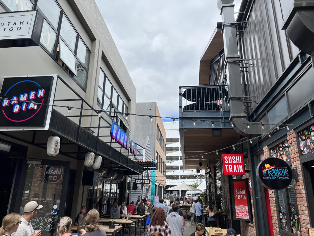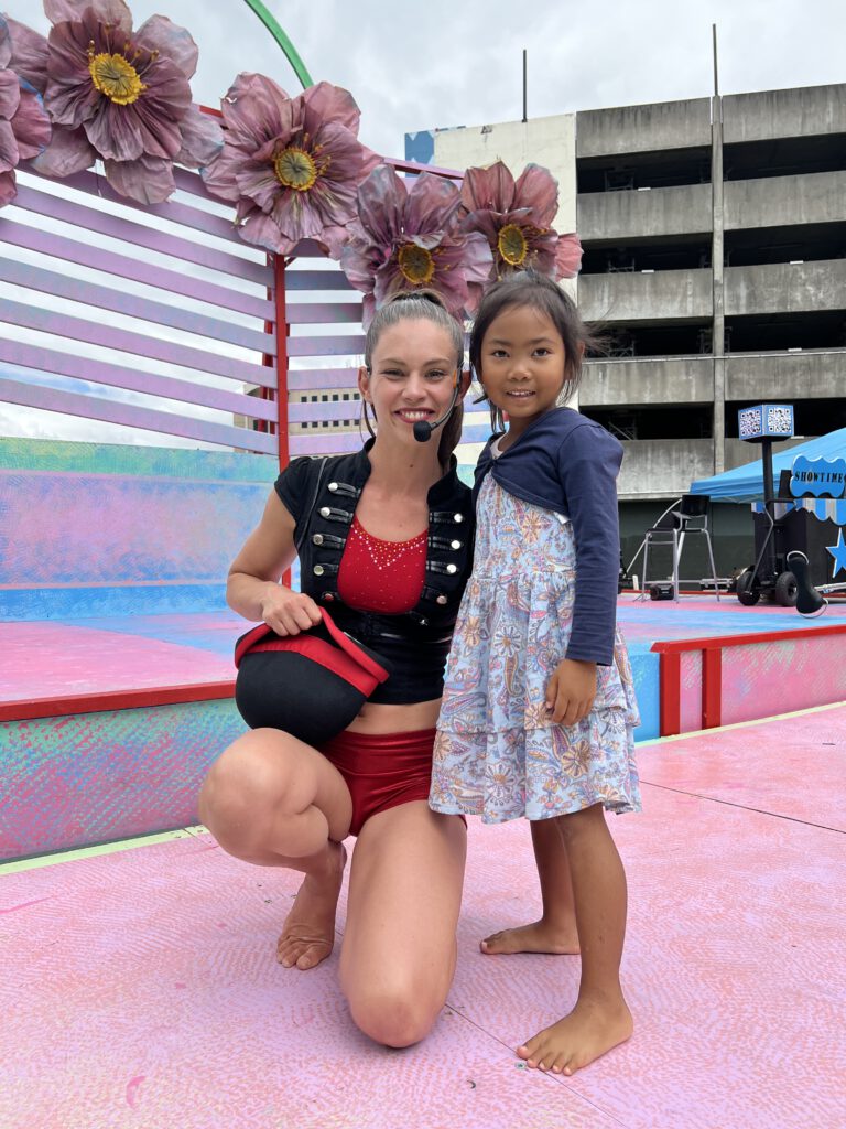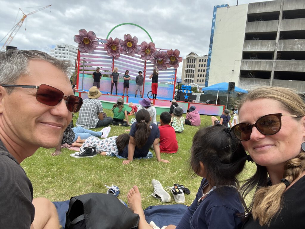 In Christchurch angekommen waren wir gespannt auf das internationale Straßenkünstlerfest. Als hätte man auf uns gewartet ging auch direkt eine Performance los, als wir an einer der vielen Bühnen ankamen. Dies animierte uns dazu, Nanettes Picknickdecke auszubreiten und uns dem Spektakel hinzugeben. Die Akrobatik Show war toll und mit viel Witz. Nadcha war so begeistert, dass sie mit der Frau aus dem Duo hinterher unbedingt ein Bild haben wollte, was auch gemacht wurde. Nach der Vorstellung trieb uns der Hunger dann zielstrebig in Richtung Christchurch Market – einer Ansammlung von Fingerfood-Geschäften aus aller Welt.