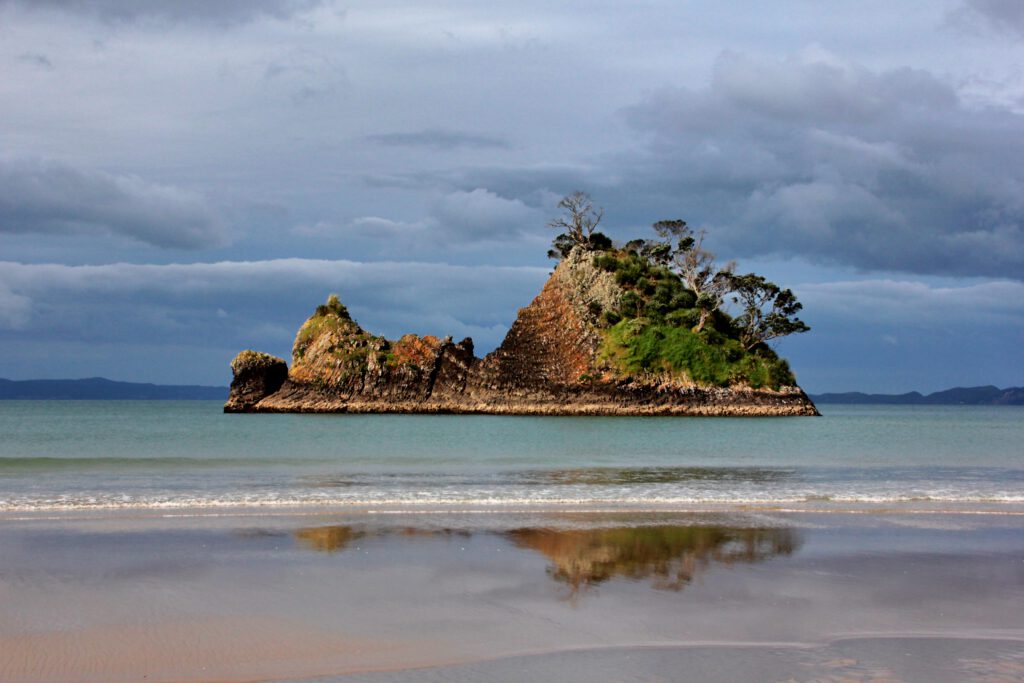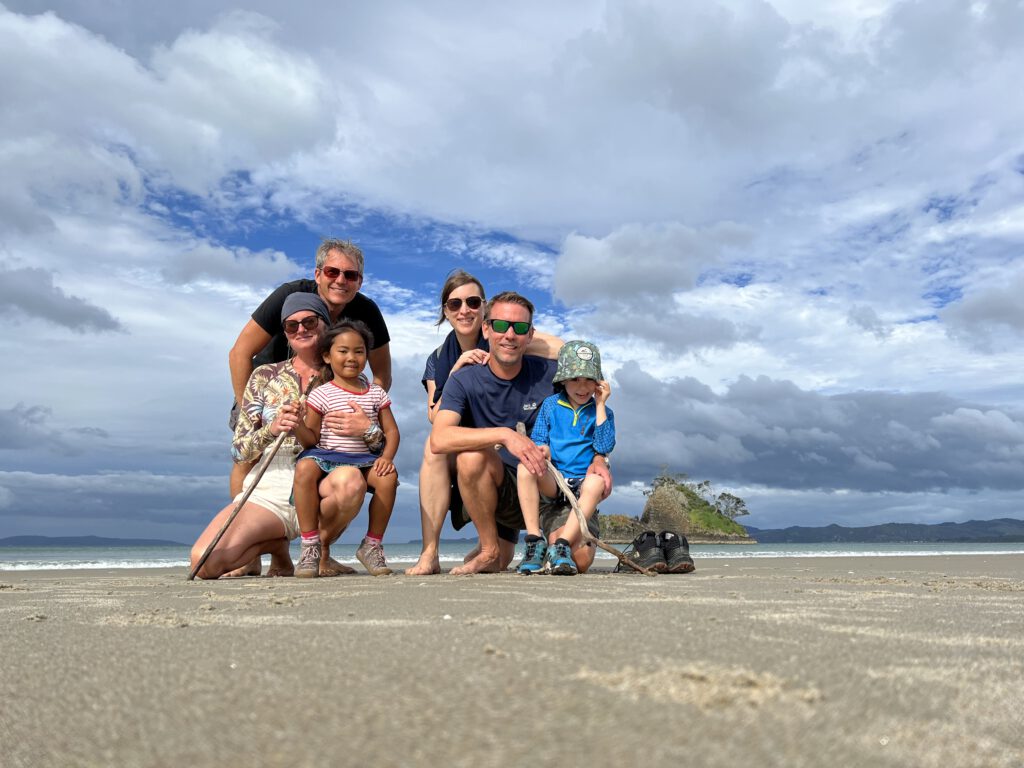 Erneut verabschiedeten wir uns, denn wir wollten uns den hiesigen Campingplatz anschauen und die anderen zog es noch weiter. Dieser gefiel uns jedoch nicht und so fuhren wir 30 Minuten weiter Richtung Coromandel. Das nette Städtchen bietet verschiedene Campingplätze und wir entschieden uns für einen Platz etwas außerhalb. Dort angekommen, checkten wir uns ein und noch während des Parkvorgangs kam uns ein schnell atmender Carsten entgegengelaufen. Auch sie hatten den Campingplatz gewählt, allerdings den hinteren und einsameren Teil, der uns von der Campingplatz-Lady aufgrund der Gravelroad nicht empfohlen wurde. Aber wenn Carstens 7,5m Motorhome den Weg schafft, dann schaffen wir das auch. Also standen wir die Nacht erneut nebeneinander auf einem tollen Platz direkt am Meer, die Kinder spielten am Strand und wir genossen ein gemeinsames Bier mit Blick auf die Wellen. Herrlich.