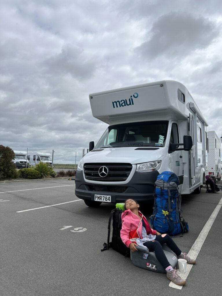 Heute Morgen, nach dem Frühstück im Hotel, fuhren wir zu Maui, um unseren Camper für die Zeit in Neuseeland abzuholen. Da wir nun schon erfahrene Camper sind ;-), wussten wir bei der Übergabe auf was zu achten ist. Der Outdoortisch war zu gagelig und wurde getauscht, ein Teekocher für die Standplätze ohne Strom für den Wasserkocher wurde nachträglich zur Verfügung gestellt und für Nadcha fragten wir nach einem ordentlichen Kindersitz.