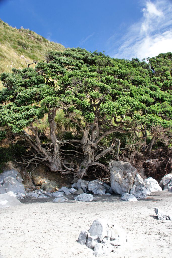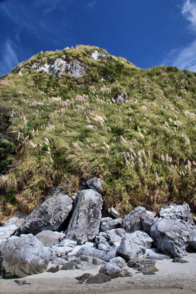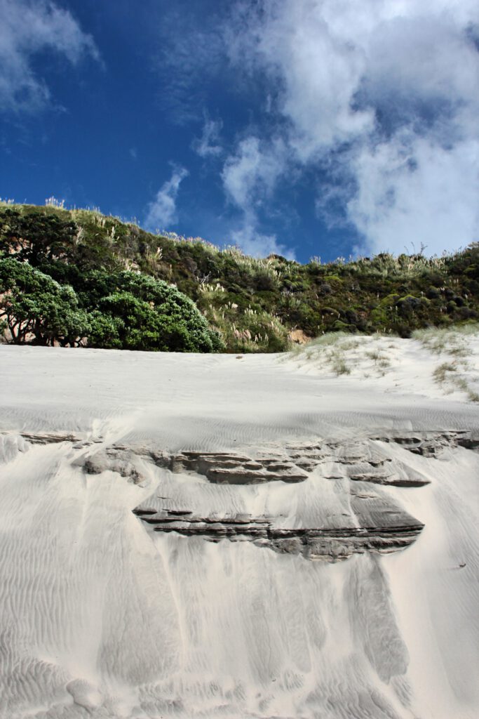 Gestern hatten wir bereits den heutigen Tag geplant und einen abgelegenen DOC Campingplatz bei Te Arai Beach gebucht. Etwas hinter dem Campingplatz sollte es einen wundervollen Walk entlang der Küste geben – den knapp 9km Mangawhai Cliffs Walkway. Nachdem wir an einer Tanke unsere Gasflasche getauscht und an einem Pie-Stand unser Mittagessen organisiert hatten, ging es auf direktem Wege dorthin.