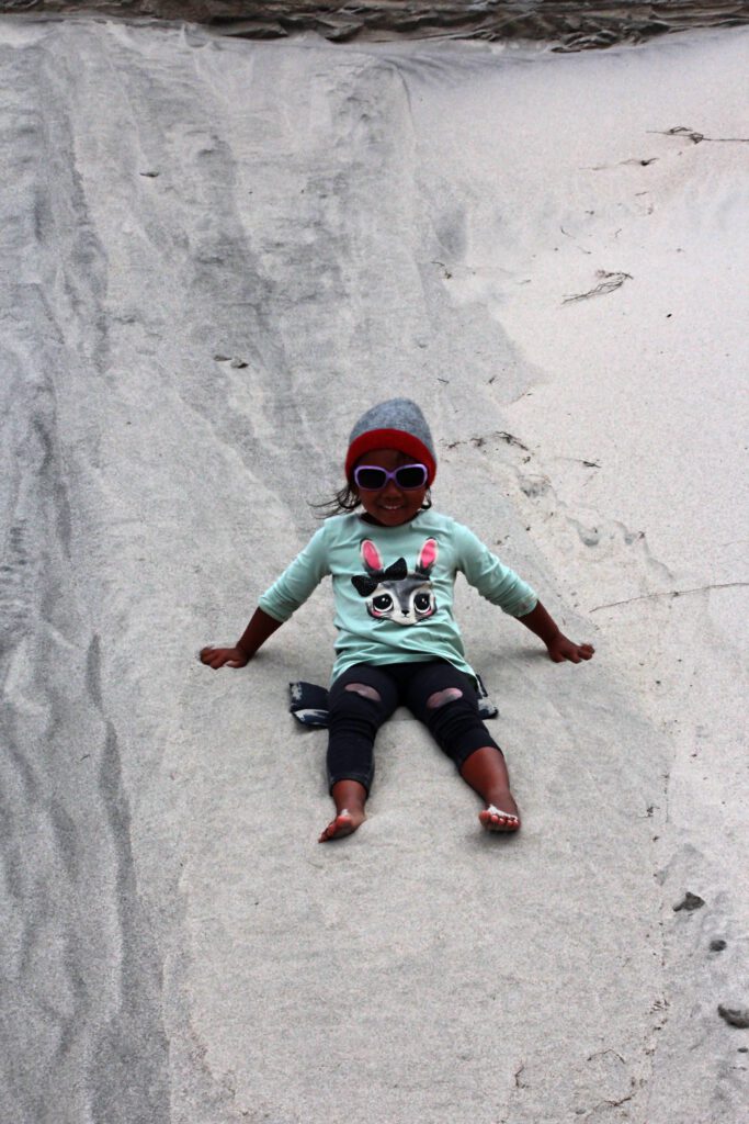 Nadcha erklomm sofort eine Sanddüne, um auf dem Po herunter zu surfen. Leider ging es nicht so flott die Düne herunter wie gewünscht, sodass schnell ein anderer Zeitvertreib gesucht wurde.
