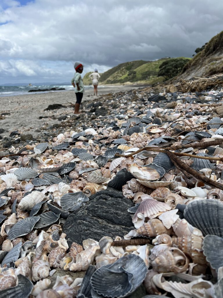 Durch den kräftigen Wind war das Meer rau und die Flut hatte neue Muscheln angespült. Muscheln gab es hier ohnehin tonnenweise: Venusmuscheln, Jakobsmuscheln und Meereschneckenhäuser so weit das Auge reichte.