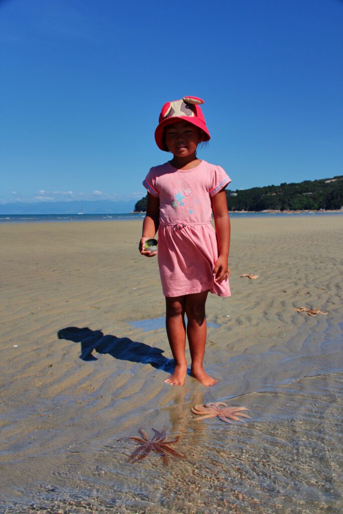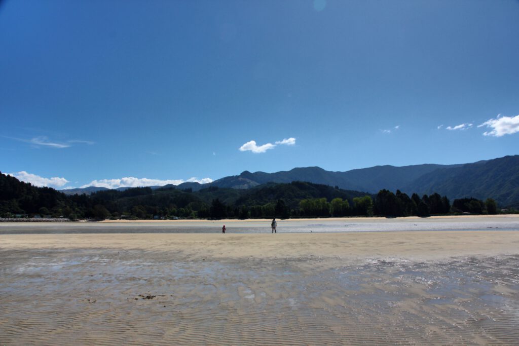 Also machten wir uns auf zu unserem nächsten Stop nach Marahau. Dort haben wir auf einem Campingplatz direkt zwei Nächte gebucht, da Marahau das Eingangstor und den Ausgangspunkt zum Abel Tasman Nationalpark darstellt. Wir erkundigten uns nach der Ankunft bei verschiedenen Anbietern auch sofort nach einer Kajaktour in den Nationalpark, wurden aber leider enttäuscht. Kinder müssen für die Touren mindestens 10 Jahre als sein und auch ein Kajak mieten und auf eigene Faust los paddeln ist leider nicht möglich. Also disponierten wir um und buchten für morgen ein Wassertaxi, welches uns in Torrent Bay rauslassen und nach einer 8 km Wanderung zum Bark Bay dort wieder einsammeln wird. Wir freuen uns bereits auf das Abenteuer morgen und sind sehr gespannt.