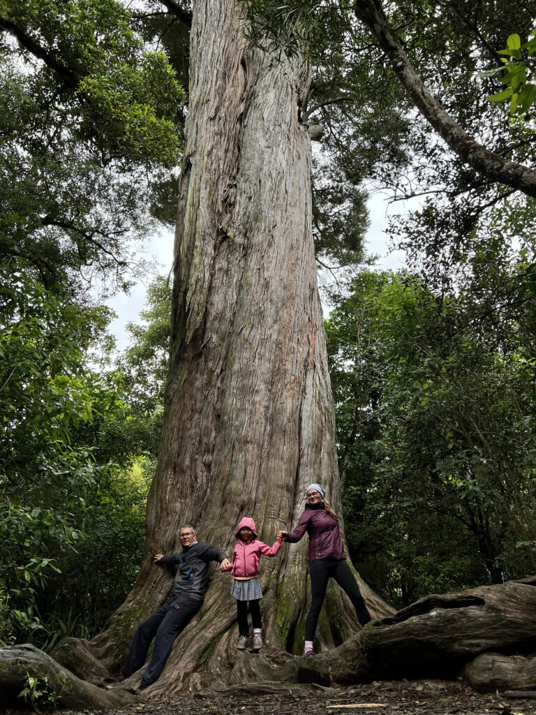 Natürlich führte der Wanderweg auch an dem größten Baum in der Region vorbei. Ein Kollos mit einer Höhe von 31m und einem Umfang von 8,4m. Sein Alter wird auf mindestens 1.000 Jahre geschätzt. Da standen wir nun mitten im Wald vor so einem riesigen Geschöpf und fühlten uns so unglaublich klein.