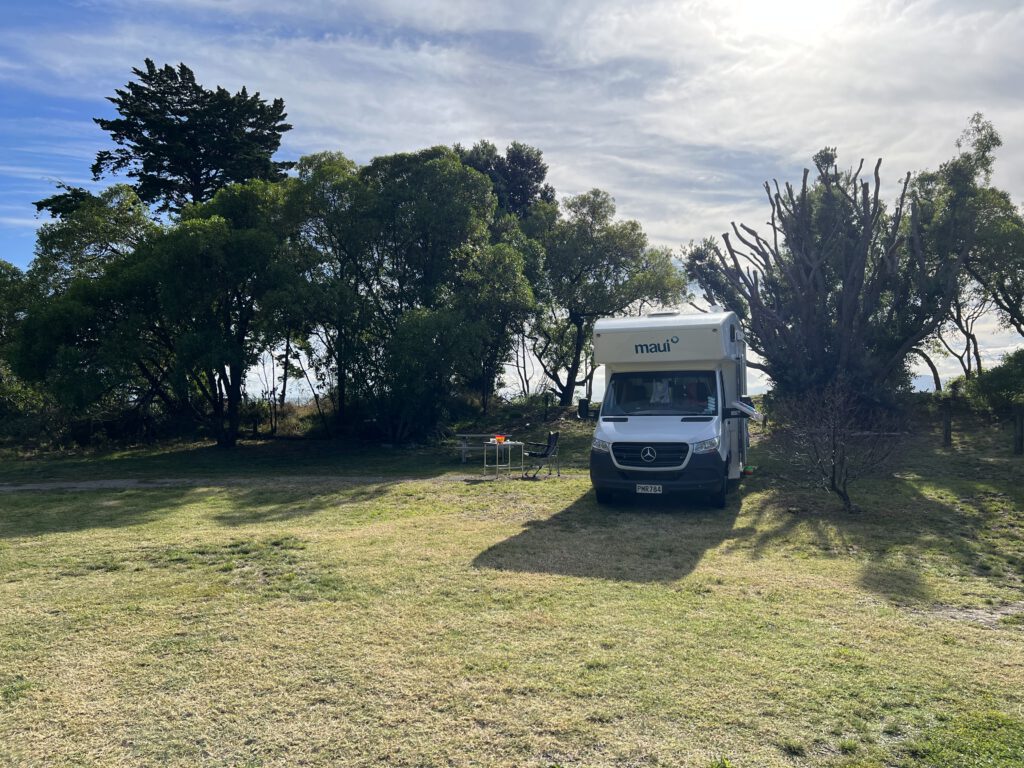Eigentlich hätten wir für den gestrigen Campingplatz zahlen müssen, doch der Warden, der wohl seit Tagen nicht zum Geldeinsammeln aufgetaucht war, ließ sich auch heute nicht blicken. Für uns hieß das neben den Einsparungen außerdem, dass wir den Campingplatz nicht pünktlich verlassen mussten. So nutzen wir die Ebbe nochmal ausgiebig zur Muschelsuche und genossen den wundervollen Blick aufs Meer.