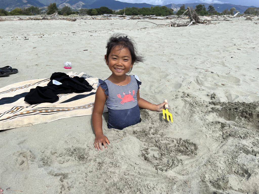 Erst mittags fuhren wir Richtung Nelson Bay und entschieden uns für einen Campingplatz direkt am Tahuna Beach kurz vor Nelson Bay. Auf einer Bank mit Blick über das Meer nahmen wir unser Mittagessen ein und verbrachten den Nachmittag bei schönem Wetter am Meer. Wir waren nahezu die Einzigen an diesem wunderschönen, feinen und weißen Sandstrand und genoßen es sehr zusammen zu buddeln und zu schwimmen. Nach einer heißen Dusche wollten wir dann in die Stadt spazieren, um uns dort ein wenig umzuschauen und nach langem mal wieder essen zu gehen. Leider machte uns das Wetter einen Strich durch die Rechnung und aufgrund heftigem Regen fuhren wir abends mit unserem Camper in die Stadt. Wir fanden einen sehr lecken Vietnamesen und Nadcha freute sich über Frühlingsrollen und gebratenen Reis.