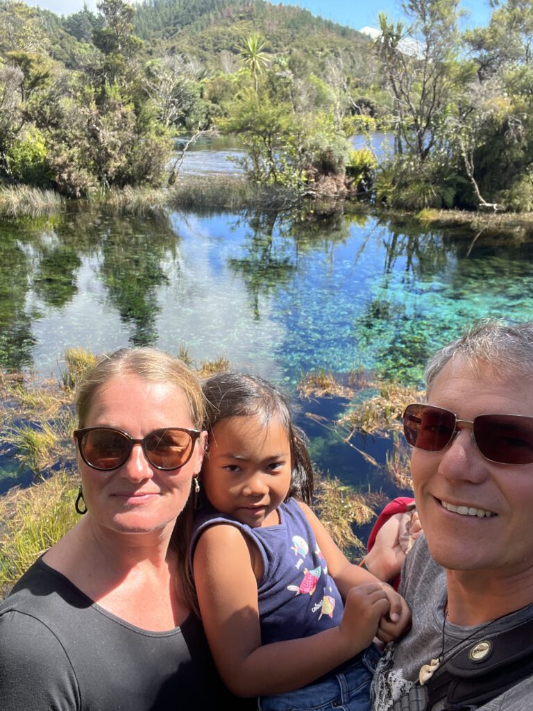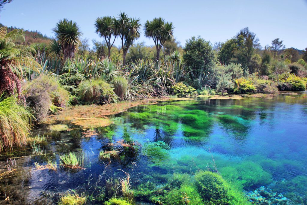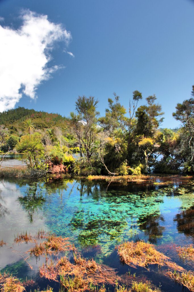 Dann aber endlich waren wir wieder auf der Strasse. Unterwegs wurden wir auf ein Schild aufmerksam, dass eine Quelle anpries, die wir uns spontan anschauten. Te Waikoropupu Spring – oder kurz einfach Pupu – stellt noch heute einen heiligen Ort für die Maories dar. Hier darf man weder vom Wasser trinken noch damit in Berührung kommen. Wenn man die Quelle sieht, versteht man auch sofort warum der Ort heilig ist. Die Quelle ist mit 14.000 Litern pro Sekunde die größte Süsswasserquelle Neuseelands und die größte Kaltwasserquelle der südlichen Hemisphäre. Darüber hinaus führt sie eine der klarsten Wasserwerte, die jemals gemessen wurde. Das Wasser ist so klar, dass man theoretisch bis in eine Tiefe von 63m sehen könnte. Aber neben den ganzen Daten war der Blick auf die riesige, türkisfarbene Quelle mit ihrer Vielzahl an Wasserwirbeln ein wundervoller und sehenswerter Ort.